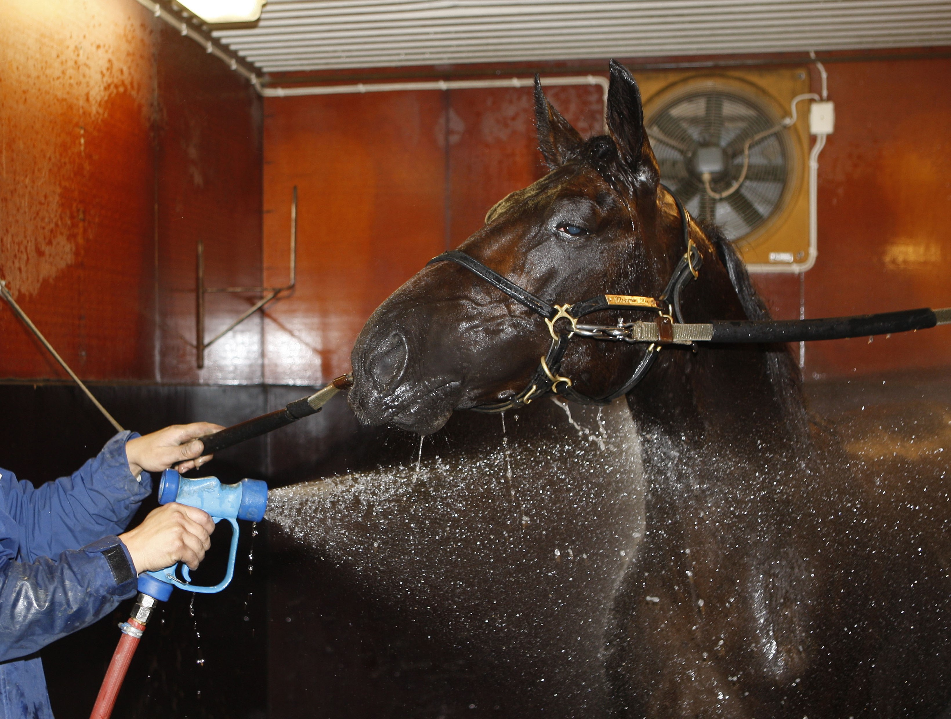 Ta av hesten alt utstyret umiddelbart etter løpet og vask den i kjølig vann. Ta umiddelbart affære dersom hesten opptrer unormalt og/eller du føler bekymring for dens velferd. Det kan også være en fordel å sele av, vaske og leie litt på hesten etter varming.